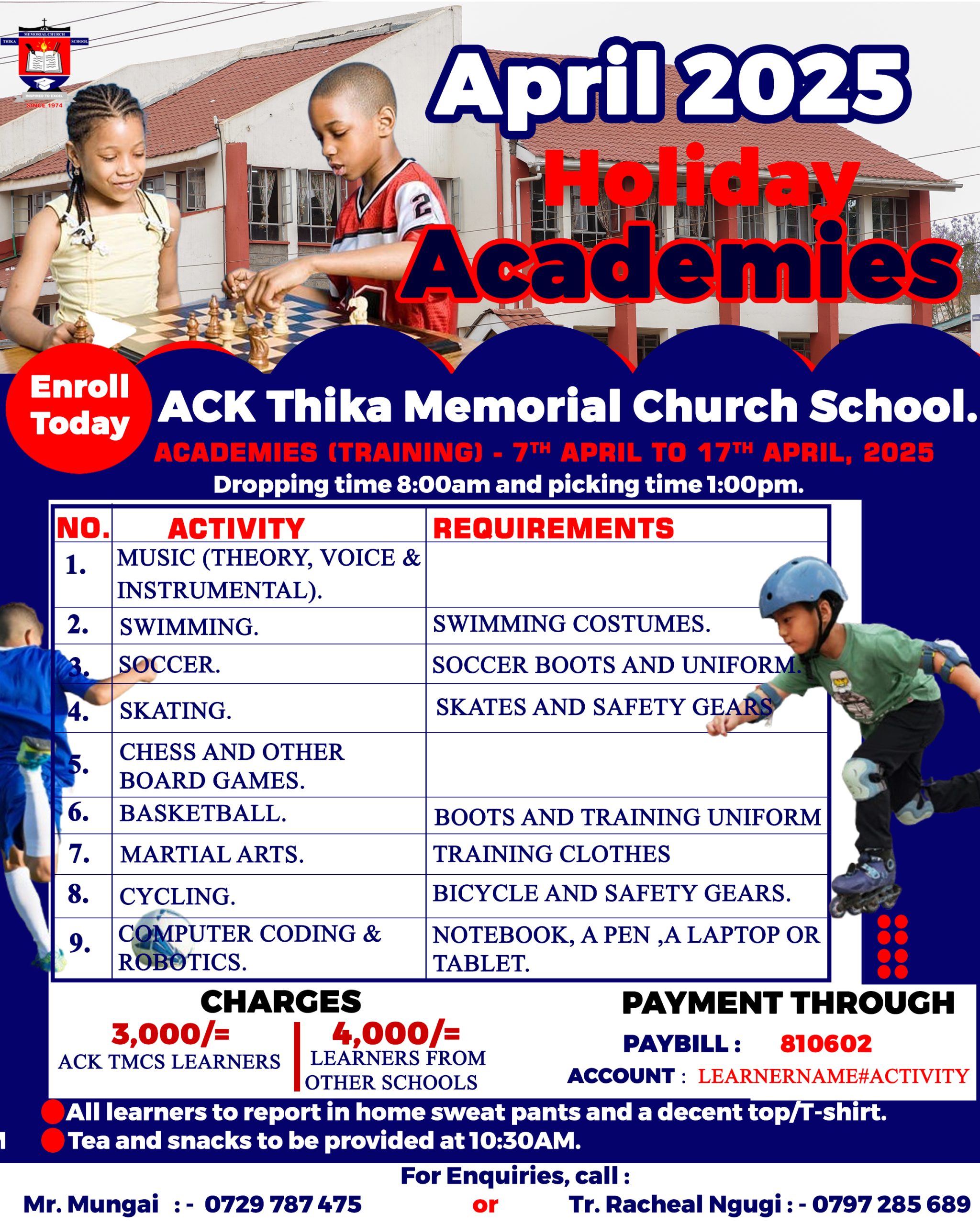Read MoreNovember 2024 Holiday Programs at ACK Thika Memorial Church School This November, ACK Thika Memorial Church School is excited to offer a fantastic holiday lineup focused on skill-building and fun for every learner. Our programs are designed to nurture new interests, deepen existing skills, and ensure an active and enriching holiday experience. Here’s what your…
